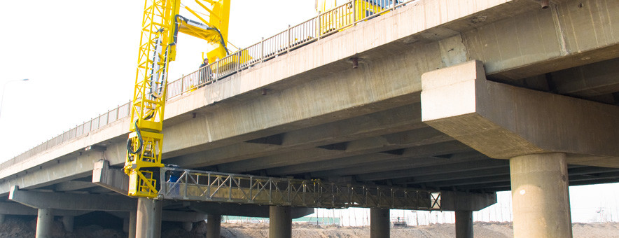 橋梁檢測車廣泛適用于大中型橋梁的病害維修和預防性檢查作業(yè),如對大橋下面各結(jié)構(gòu)進行全面的檢查、維修與維護(油漆、噴砂、安裝、拆卸),包括對大橋主梁梁底裂紋檢測和全橋支座檢查養(yǎng)護,也可以安裝和維護橋下管道和電纜。