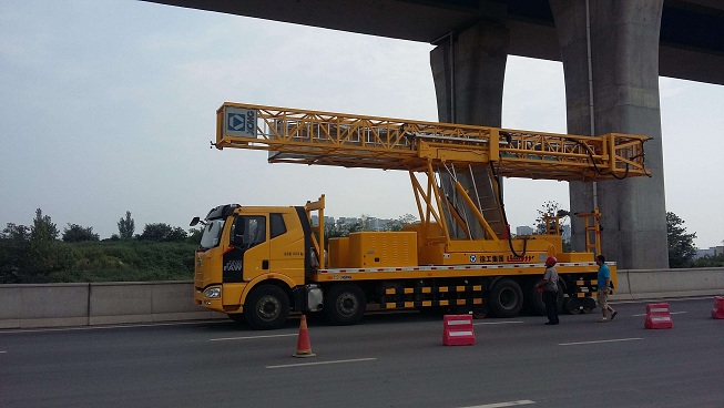 橋梁檢測(cè)車廣泛適用于大中型橋梁的病害維修和預(yù)防性檢查作業(yè),如對(duì)大橋下面各結(jié)構(gòu)進(jìn)行全面的檢查、維修與維護(hù)(油漆、噴砂、安裝、拆卸),包括對(duì)大橋主梁梁底裂紋檢測(cè)和全橋支座檢查養(yǎng)護(hù),也可以安裝和維護(hù)橋下管道和電纜。