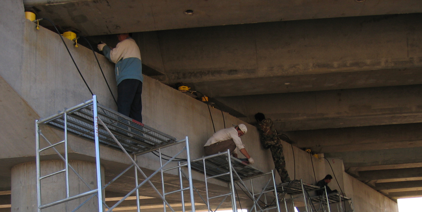支座更換的安裝內(nèi)容:橡膠支座在安裝前,應(yīng)檢查產(chǎn)品合格證書中有關(guān)技術(shù)性能指標(biāo),外委檢驗(yàn)合格后方準(zhǔn)使用。支座下設(shè)臵的支承墊石,混凝土強(qiáng)度應(yīng)符合設(shè)計(jì)要求,頂面要求標(biāo)高準(zhǔn)確,表面平整,避免支座發(fā)生偏歪、不均勻受力和脫空現(xiàn)象。安裝前應(yīng)將支座墊石頂面鑿毛,用環(huán)氧樹脂水泥精確調(diào)平,支座頂面標(biāo)高比設(shè)計(jì)標(biāo)高低1cm。