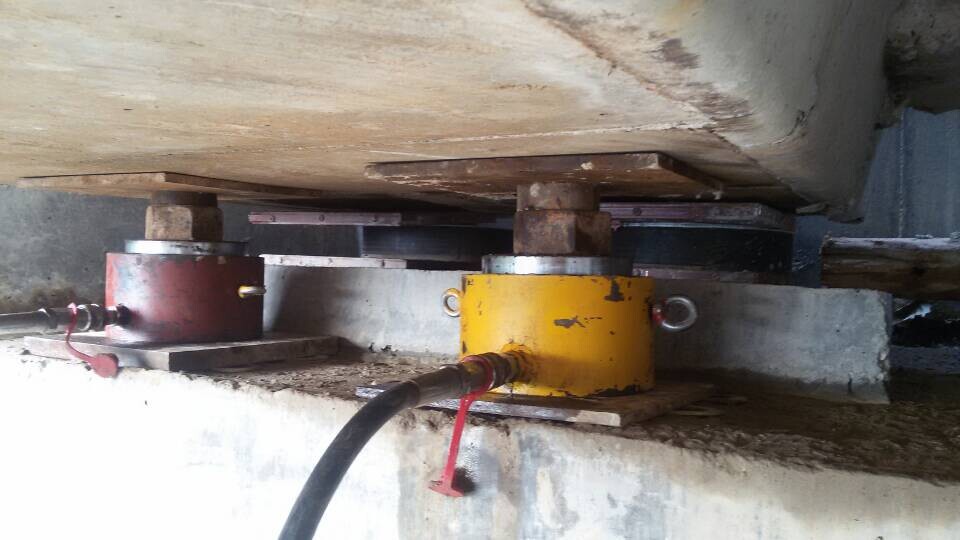 架設(shè)箱梁時,根據(jù)測量定位的位置及高程,箱梁落梁應先落在千斤頂上,再準確就位,隨后對支座下座板與支承墊石之間,錨栓孔內(nèi)進行重力注漿。